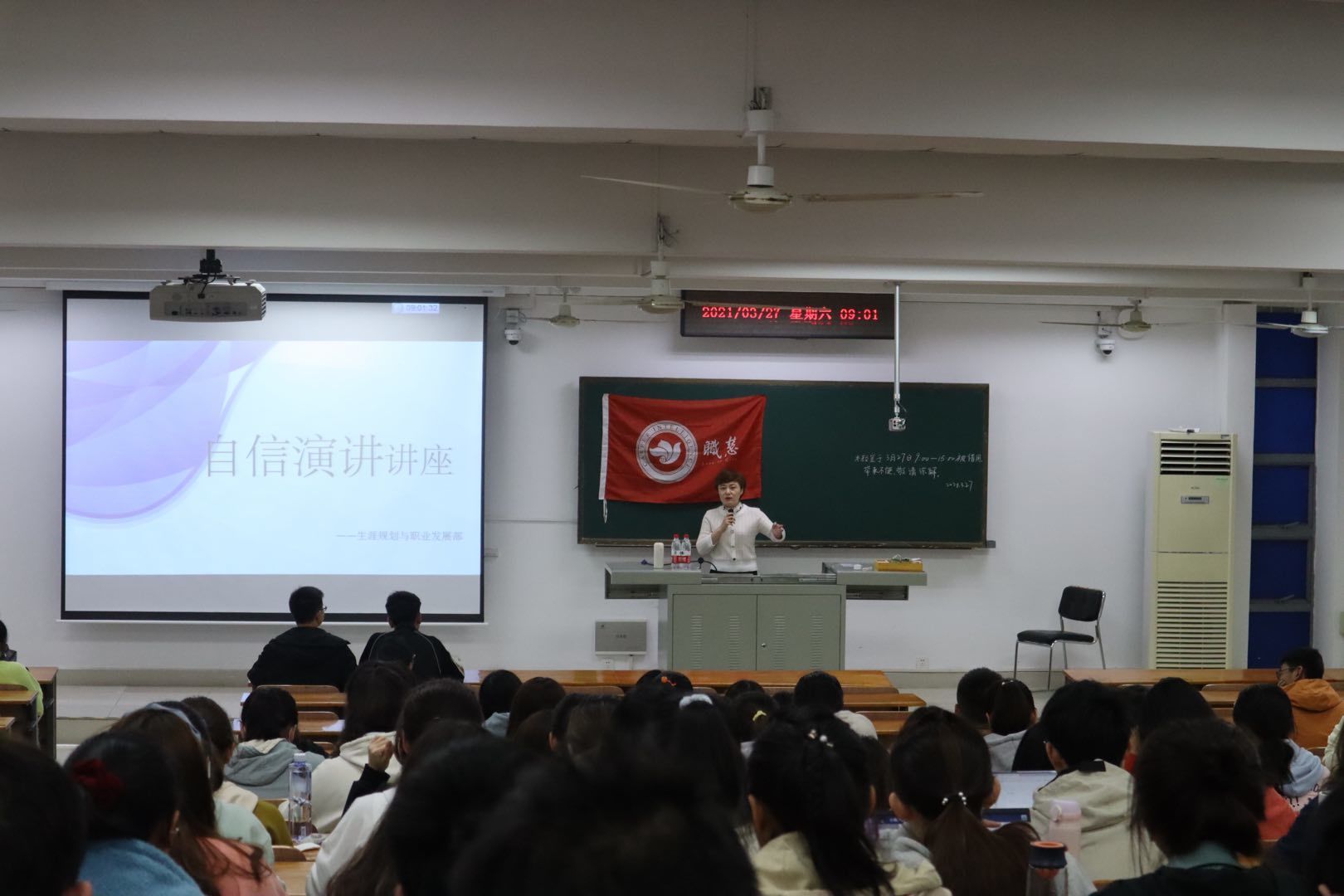 对正确的听众,用正确的方式,传递正确的信息,是每个人都需要培养的核心技能之一。为帮助同学们增强在演讲中的自信,由91直播 生涯规划与职业发展部主办的就业指导系列讲座之“自信演讲”指导讲座于3月27日上午在第三教学楼C205教室成功举办。本次讲座邀请到了北京大学心理学学士、职慧志愿讲师刘司玥担任主讲人。
