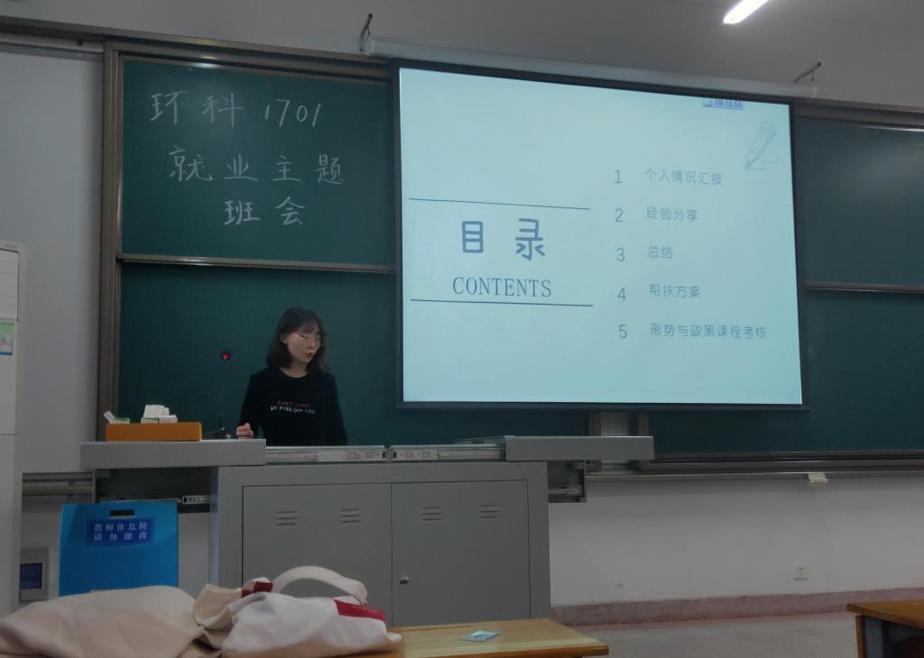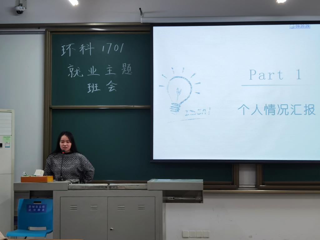 习近平总书记曾强调要把稳就业、保就业作为“六稳”“六保”工作的首位,彰显了就业工作在全局工作的重要位置。为进一步引导同学了解就业形势、增强就业意识,3月15日上午9时,环科1701班召开了就业主题班会,全体班级同学积极与会。